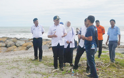 Wakil Bupati Agam, Irwan Fikri, SH Dt. Parpatiah saat meninjau lokasi abrasi, Rabu (3/8) mengatakan, pengikisan bibir pantai itu berpotensi memberikan ancaman besar terhadap pemukiman masyarakat.