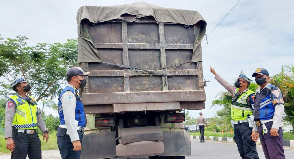 “Mobil truk yang melintas dan kedapatan tidak memakai terpal untuk menutup barang bawaannya kita berhentikan lalu diperiksa kelengkapan surat kendaraannya mulai dari STNK, SIM dan surat jalan atas barang yang dibawa truk tersebut. Yang tidak bisa menunjukan kelengkapan surat-suratnya, maka kita berikan sanksi teguran, bahkan kita tilang sebagai upaya memberikan efek jera,” ujarnya.