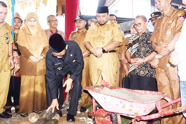 LETAKAN—Wali Kota Padang Hendri Septa letakan batu pertama pembangunan Mushalla SMPN 2 Padang beberapa pekan lalu.