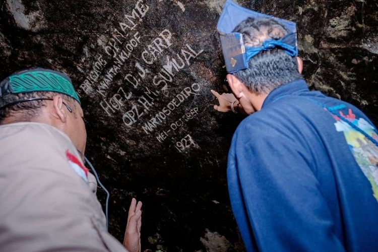 KUNJUNGI—Menparekraf Sandiaga Uno mengunjungi goa yang menjadi saksi sejarah pada masa penjajahan Belanda dan Jepang di Desa Wisata Silokek yang masuk ke dalam 50 besar Anugerah Desa Wisata Indonesia