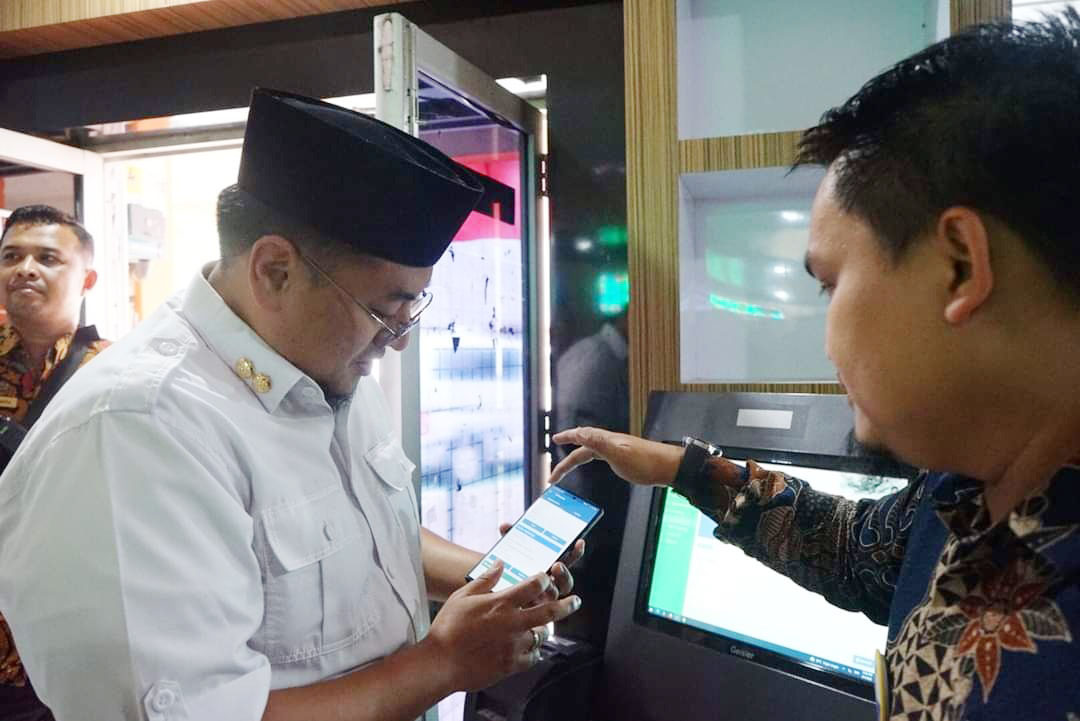 UJI COBA—Wabup Richi Aprian melakukan uji coba Digital Id atau pendaftaran Identitas Kependudukan Digital..