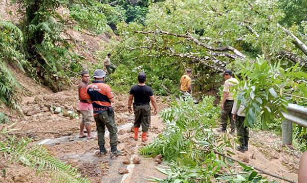 “Sementara lokasi ke lima satu batang pohon garu dengan panjang 14 meter dan lebar 45 cm juga tumbang. Selain itu di titik lainnya pohon kedondong sepanjang 18 m dan diameter 45 cm yang tumbang dan menghambat akses jalan. Sementara di Kelok S Jalan Menuju Sungai Pisang, hujan dan angin kencang menyebabkan longsor dengan luas terdampak longsoran sekitar 50 m,” ujarnya.