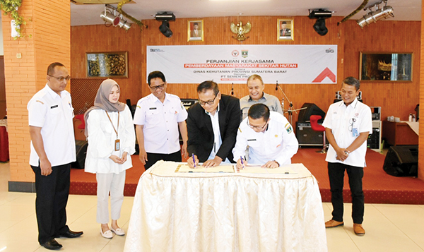 Penandatangan perjanjian kerjasama itu dilakukan oleh Kepala Departemen Komunikasi & Hukum Perusahaan PT Semen Padang, Iskandar Z Lubis dan Kepala Dinas Kehutanan Sumbar, Yozarwardi, serta disaksikan Direktur Keuangan & Umum PT Semen Padang Oktoweri, Kepala Bidang Ekonomi Sumber Daya Alam Bappeda Provinsi Sumbar, Benny Sati, dan Kepala Unit CSR PT Semen Padang Rinold Thamrin.