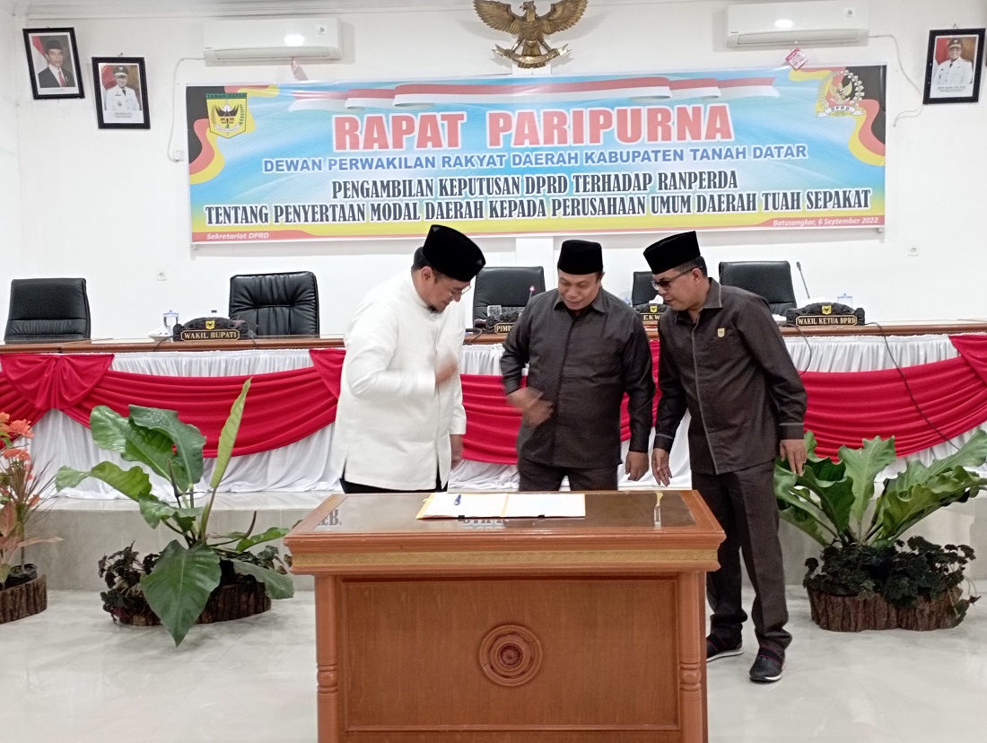 Dari hasil persetujuan bersama oleh seluruh Fraksi di DPRD Tanah Datar, menyetujui Ranperda tentang Penyertaan Modal Daerah kepada Perumda Tuah Sepakat, menjadi Peraturan Daerah (Perda).