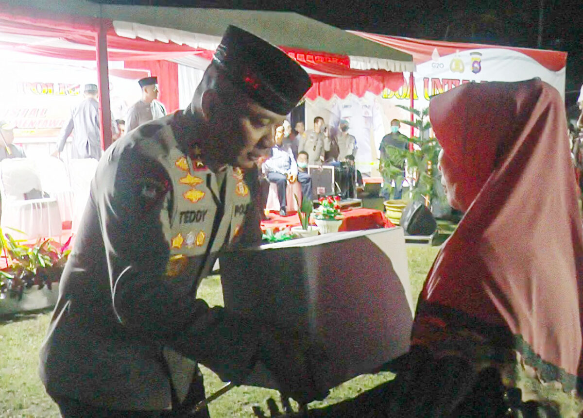 MENTAWAI, METRO–Kapolda Sumbar Irjen Pol Teddy Minahasa P juga menyalurkan2.750 paket bantuan sembako untuk masyarakat Kabupaten Kepulauan Mentawai. Pembagian sembako itu digelar di Halaman Mapolres Kepulauan Mentawai usai pelaksanaan doa lintas agama, Selasa malam (6/9).