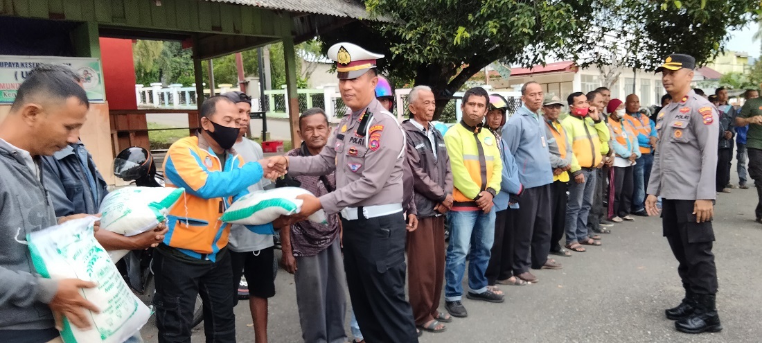Kapolres Sijunjung AKBP M.Ikhwan Lazuardi didampingi Wakapolres Kompol Dwie Yulianto dan Kasat Lantas Akp Zamrinaldi mengatakan, sebanyak 100 paket sembako setiap harinya dibagikan untuk masyarakat yang membutuhkan. “Ada 100 paket sembako yang kita bagikan setiap harinya, baik itu dari Polres maupun yang disebar melalui seluruh Polsek yang ada. Giat ini merupakan inisiatif Kapolres dan menindaklanjuti instruksi untuk membantu masyarakat pasca kenaikan harga BBM,” tutur Kapolres Sijunjung.