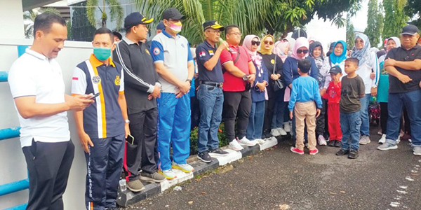 JALAN SANTAI— Kepala Dishub Sumbar, Heri Nofiardi didampingi Sekretaris, Marten Yunus bersama Pimpinan Insan dan Mitra Perhubungan se-Sumbar melepas jalan santai di halaman kantor Dishub Sumbar, Minggu pagi (18/9).
