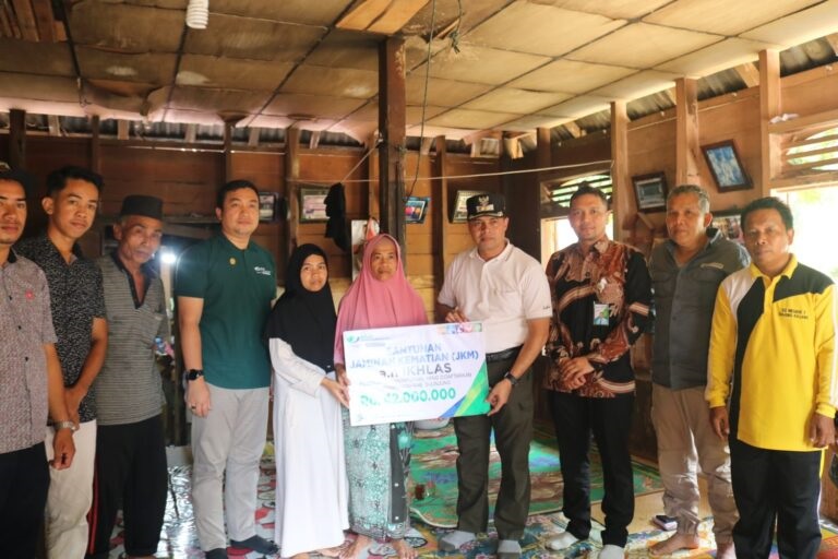 SIJUNJUNG, METRO–Fasilitas jaminan sosial yang dicetuskan Pemkab Sijunjung, kini dirasakan manfaatnya bagi masyarakat. Satu keluarga di Jorong Parik Malintang, Nagari Tanjung Kaliang Kecamatan Kamang Baru menerima santunan kematian selaku penerima manfaat jaminan sosial ketenagakerjaan.