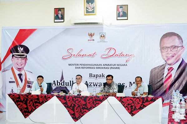 DHARMASRAYA, METRO–Usai melakukan kunjungan kerja di Provinsi Sumatera Barat, Menteri Pemberdayaan Aparatur Negara dan Reformasi Birokrasi (Menpan-RB), Abdullah Azwar Anas, menyempatkan diri melakukan silaturahmi dengan Bupati Dharmasraya, Sutan Riska Tuanku Kerajaan, dan jajaran Pemerintah Kabupaten Dharmasraya. Pertemuan dilaksanakan di rumah dinas bupati setempat, Pulau Punjung, Senin malam (26/9).