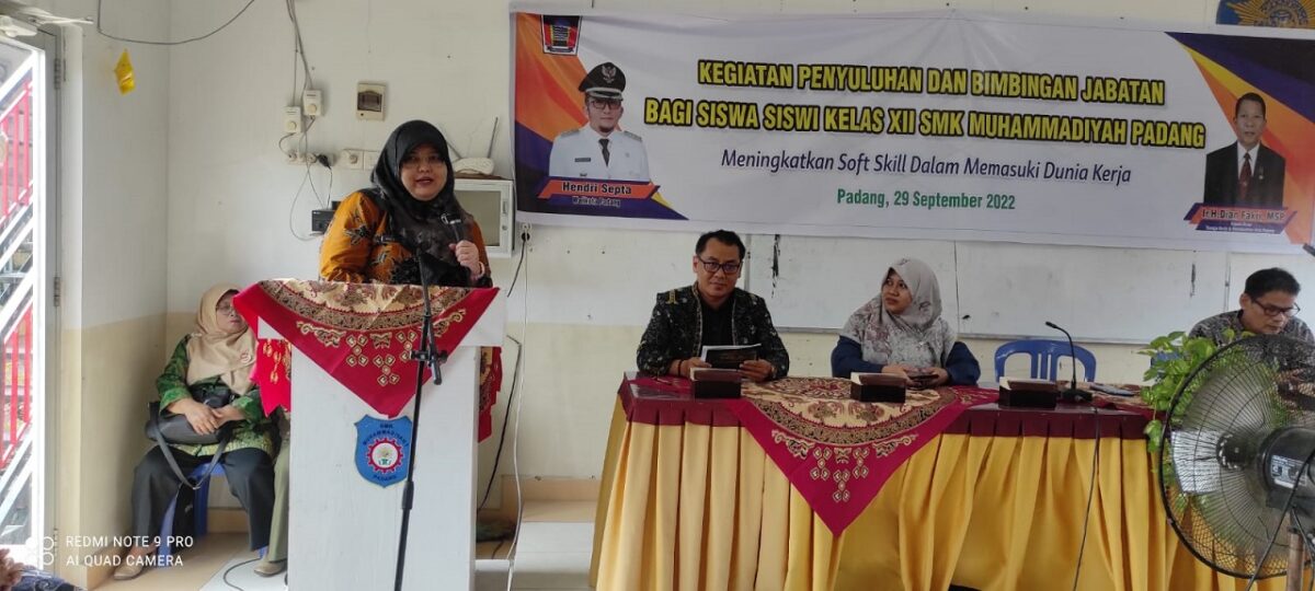 Kepala SMK Muhammadiyah 1 Padang Habi­bullah SE berterima kasih atas kepercayaan yang diberikan  Disnakerin Pa­dang sebagai sasaran pe­nyuluhan bimbingan jabatan di SMK Muhamma­diyah 1 Padang, yang diikuti  40 siswa/siswi.