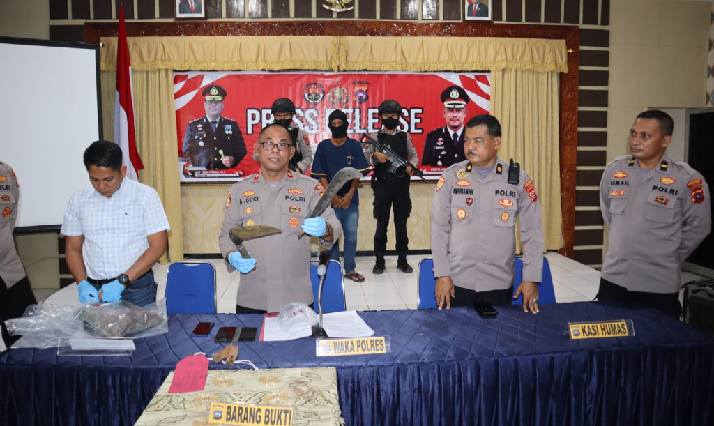 “Mengetahui korban tidak bernyawa lagi pelaku langsung kabur meninggalkan korban dan membuang barang bukti parang dan sabit di lokasi parit tidak jauh dari korban dibunuh. Pelaku kabur ke rumahnya lalu mandi dan merendam baju yang ia kenakan saat melakukan membunuh korban,” katanya.