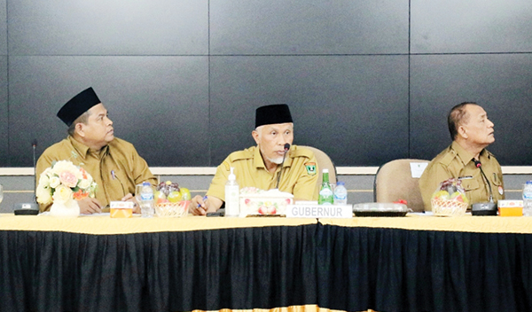 Gubernur Sumbar, Mahyeldi Ansharullah memimpin rapat pembebsan lahan tol Padang-Sicincin