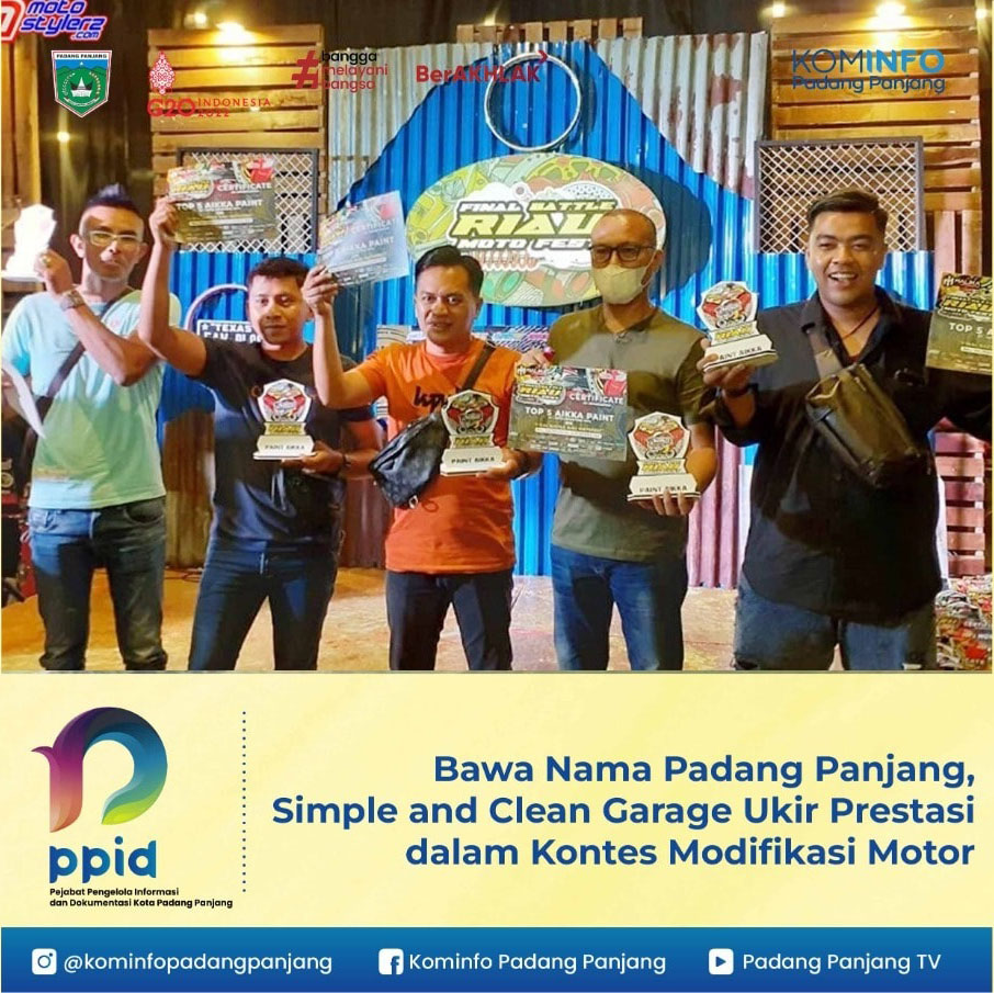 PADANG PANJANG, METRO–Komunitas pegiat modifikasi otomotif, Simple and Clean Garage berhasil memboyong beberapa trofi dalam berbagai kategori kontes modifikasi dalam ajang Riau Moto Fest 2022 yang digelar 1-2 Oktober lalu di Mall SKA, Kota Pekanbaru.