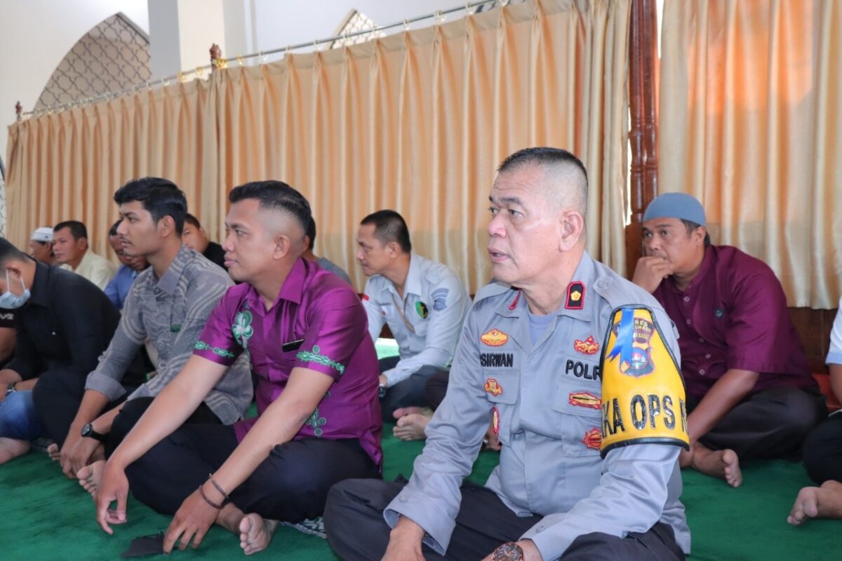 DOA BERSAMA— Wakapolres Payakumbuh Kompol Russirwan mengikuti kegiatan doa bersama serta tausyiah untuk korban tragedi Kanjuruhan, Kabupaten Malang, Provinsi Jawa Timur, di di Masjid Nur Ikhlas Polres Payakumbuh.