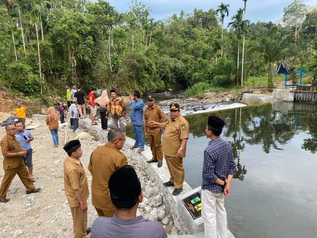 PERBAIKAN IRIGASI— Bupati Padangpariaman Suhatri Bur melakukan peninjauan perbaikan jalur irigasi Tabek Sikucur, Kecamatan V Koto Kampung Dalam.