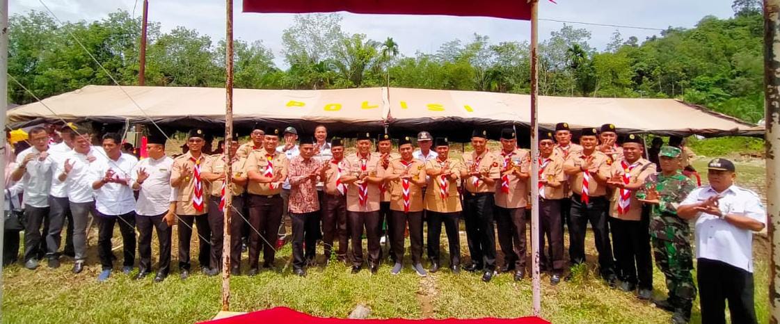 Wakil Bupati Pesisir Selatan Apt. Rudi Hariansyah, S. Si, didampingi Wakapolres Pessel Kompol. Joko Hendro L, S.H.,S.IK, bersama meninjau Tenda-tenda/perkemahan peserta Pertikara dan melakukan foto bersama dengan Peserta Pertikara. ( Rio)