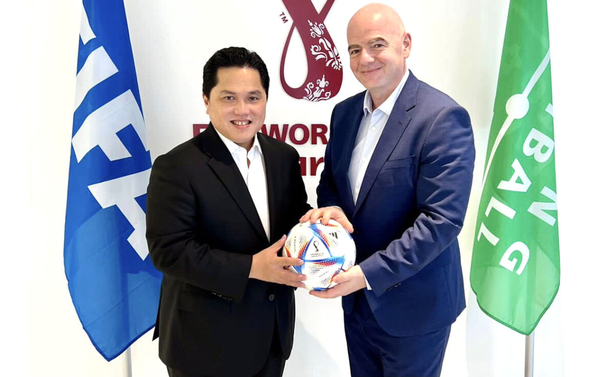 MENTERI Erick Thohir melakukan pertemuan dengan Presiden FIFA, Gianni Infantino, Rabu (5/10) lalu. Selain menerima ucapan duka atas musibah di Kanjuruhan, Erick dan tim juga membahas banyak hal demi kemajuan sepakbola di masa depan, khususnya Indonesia.
