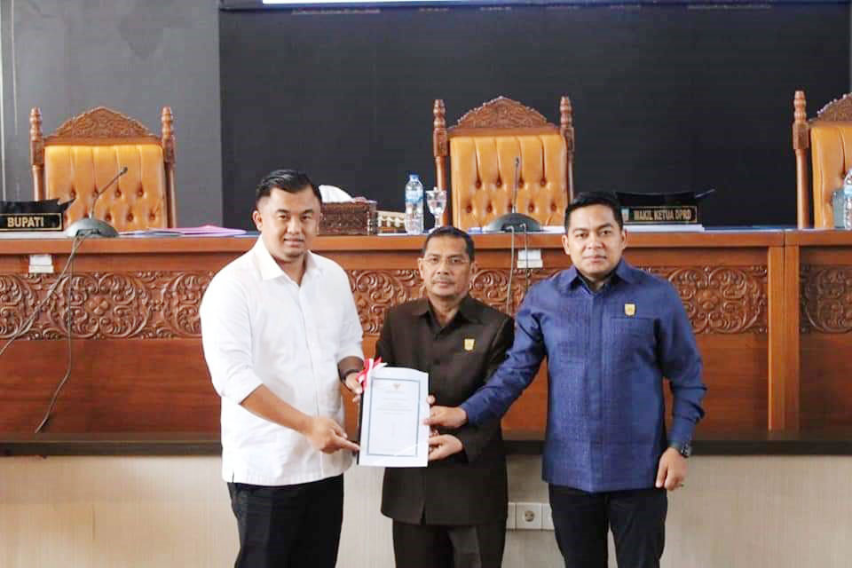 DHARMASRAYA, METRO–Bupati Dharmasraya, Sutan Tuanku Kerajaan sampaikan pandangan atas nota penjelasan DPRD terhadap penyampaian lima rancangan Peraturan Daerah (Ranperda) Kabupaten Dharmasraya, di Ruang Sidang Utama DPRD setempat, Tebing Tinggi, Rabu, (12/10). Adapun pandangan bupati mengenai lima rancangan Perda tersebut, diantaranya rancangan perda tentang penyelenggaraan kesejahteraan lanjut usia diselenggarakan melalui beberapa program, yang terdiri atas pelayanan keagamaan dan mental spiritual, pelayanan kesehatan, pelayanan kesempatan kerja, pelayanan pendidikan dan pelatihan, kemudahan dalam penggunaan fasilitas, sarana, dan prasaranan umum, kemudahan dalam layanan dan bantuan hukum, perlindungan sosial dan bantuan sosial.