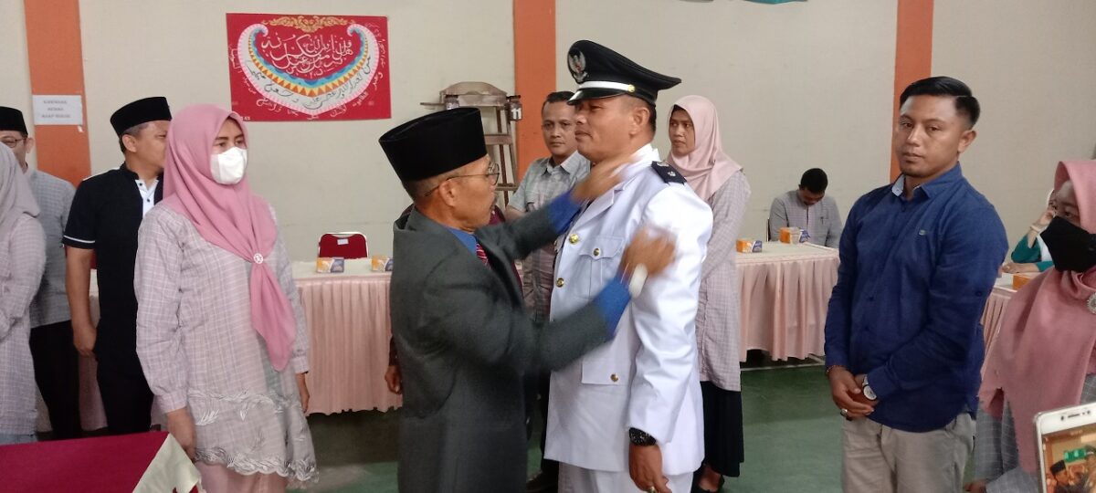 Selanjutnya dia juga menyematkan pin kepada Lurah Saringan Fauzan Hamid dan menandatangani Sertijab. (pin)