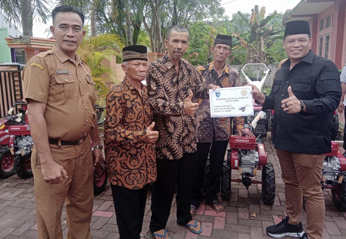 Bertempat di halaman Kantor Dinas Pertanian Tanaman Pangan Hortikultura setempat, Hakimim Chan menyerahkan secara simbolis kepada 9 kelompok tani penerima bantuan alat alsintan.