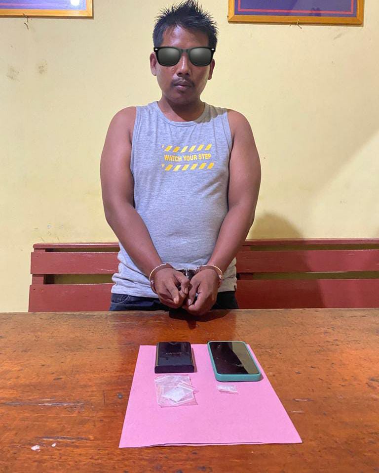 PESSEL METRO–Menyamar sebagai pembeli tim opsnal Sapu Jagat Satu Res Narkoba Polres Pesisir Selatan, Senin ( 17/10/2022) pukul 18.00 Win berhasil membekuk PN (27) warga
