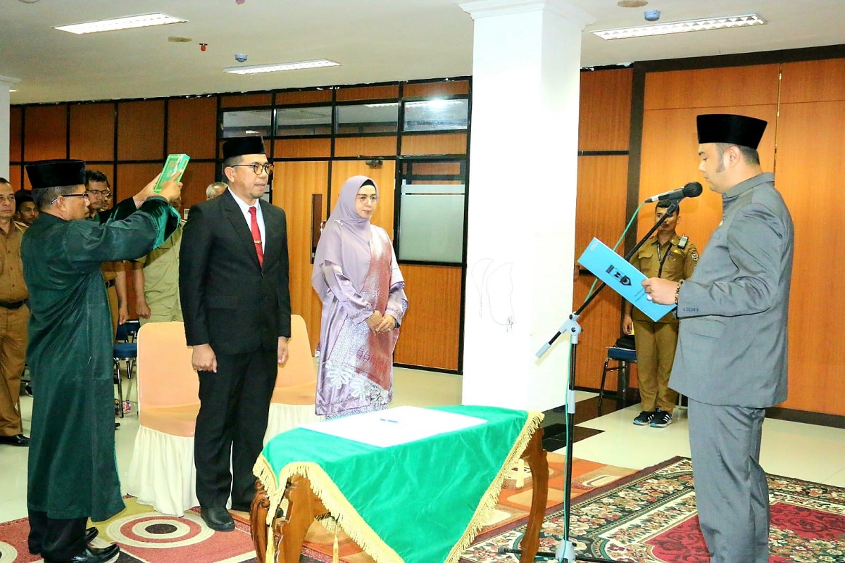 Prosesi pelantikan dan pengambilan sumpah jabatan dilakukan langsung oleh Bupati Benny Dwifa Yuswir dan Wabup Iraddatillah serta diikuti oleh seluruh jajaran perangkat daerah dilingkungan Pemkab Sijunjung, pada Senin (17/10) bertempat di Kantor Bupati.