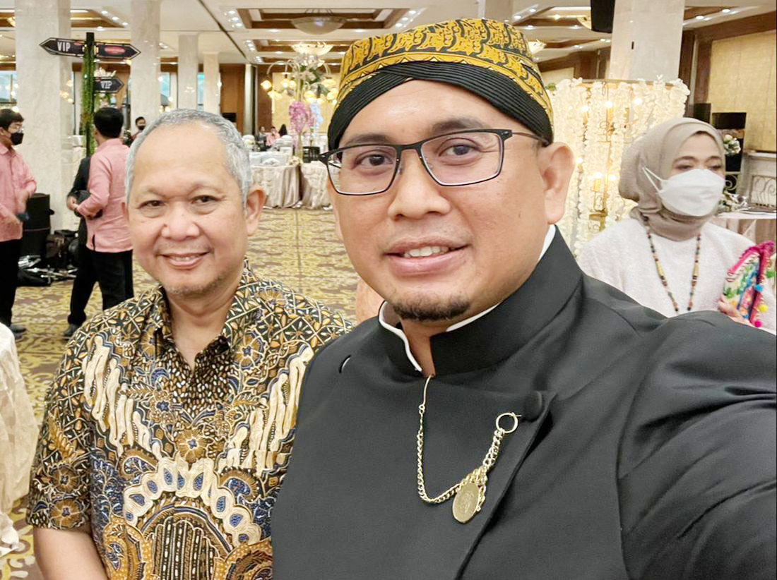 Anggota DPR RI Andre Rosiade bersama dengan Direktur Jenderal Pembiayaan Infrastruktur Pekerjaan Umum dan Perumahan Kementerian PUPR Herry Trisaputra Zuna saat bertemu dalam pesta pernikahan di Jakarta.
