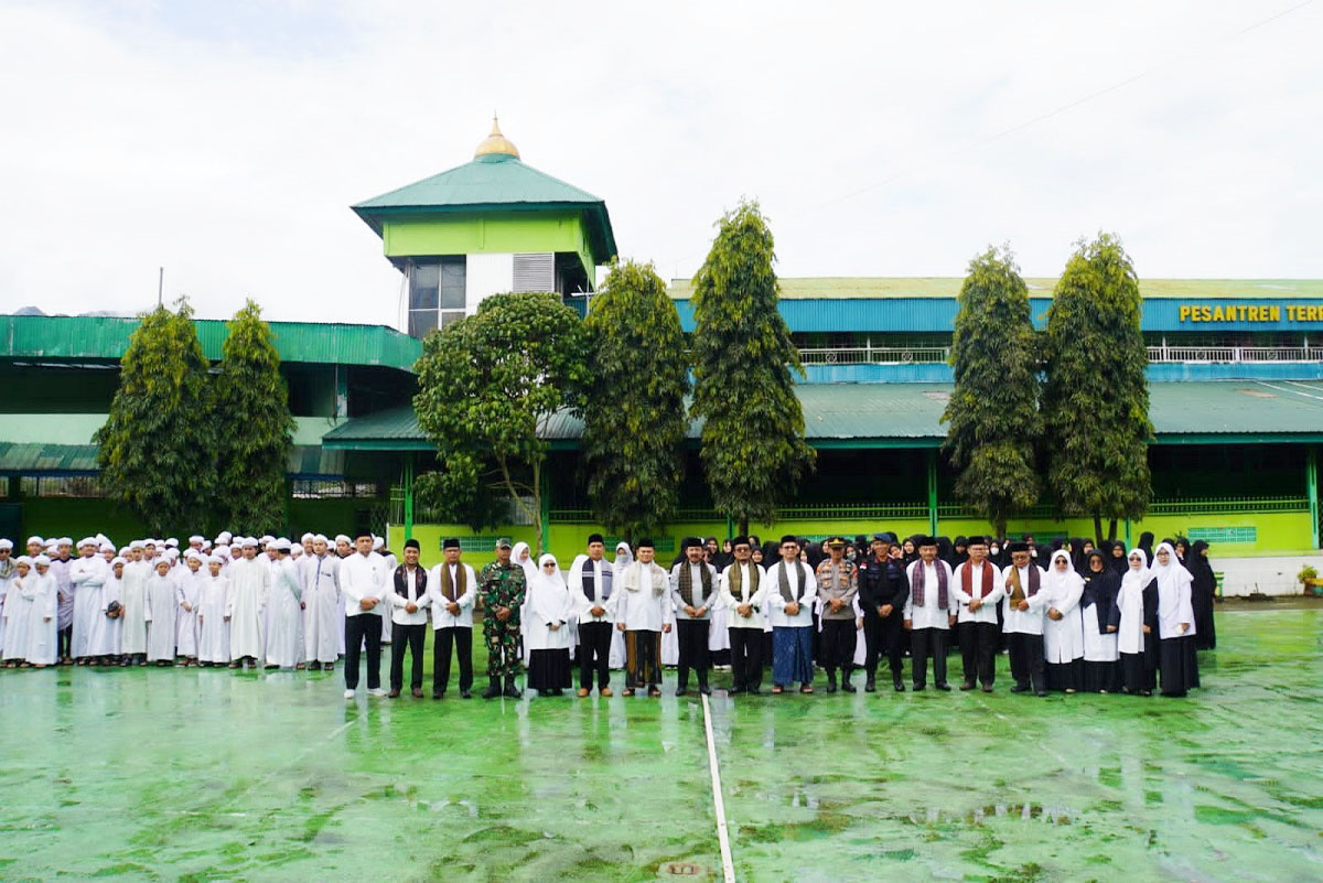 PDG.PANJANG, METRO–Meski diiringi gerimis, upacara peringatan Hari Santri VIII-2022 tetap berlangsung sukses di halaman Pesantren Terpadu Serambi Mekkah, Sabtu (22/10).