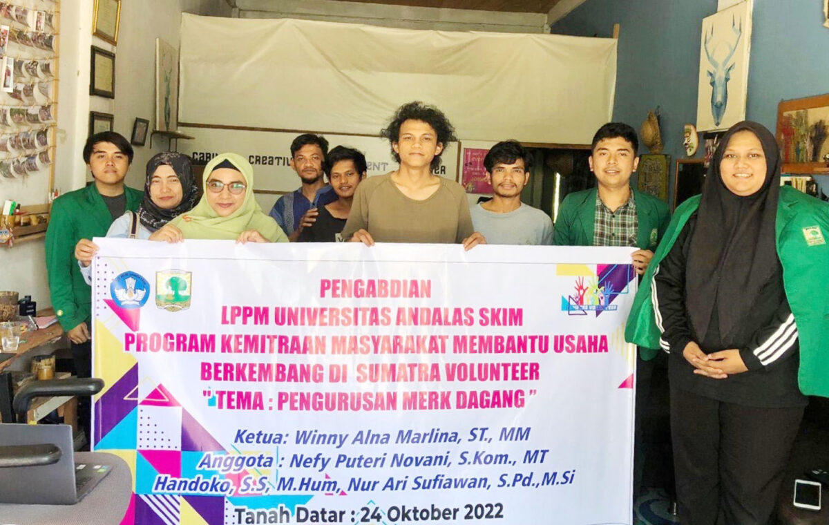 Acara pengabdian me­ru­­pakan tahun ketiga dengan kegiatan keenam. Pe­ngab­dian LPPM Universitas Andalas  dilaksa­nakan pada hari Senin, 24 Oktober 2022 untuk keenam  kalinya dimana ini adalah tahun ketiga dari program kemitraan  berkelanjutan dalam rangka memberikan sosialisasi dari  “Pengurusan Merek Dagang “.
