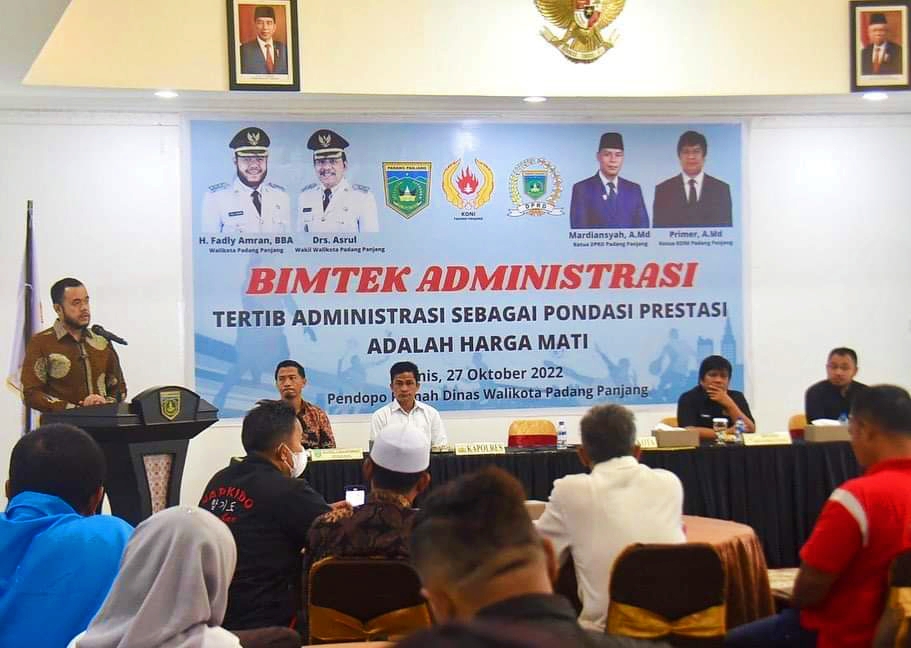 PDG.PANJANG, METRO–Penyeragaman administrasi Komite Olahraga Nasional Indonesia (KONI) Kota Padangpanjang, KONI gelar Bimbingan Teknis Administrasi bagi pengurus Cabang Olahraga di Kota Padangpanjang. Kamis (27/10), di Pendopo Rumah Dinas Wali Kota.