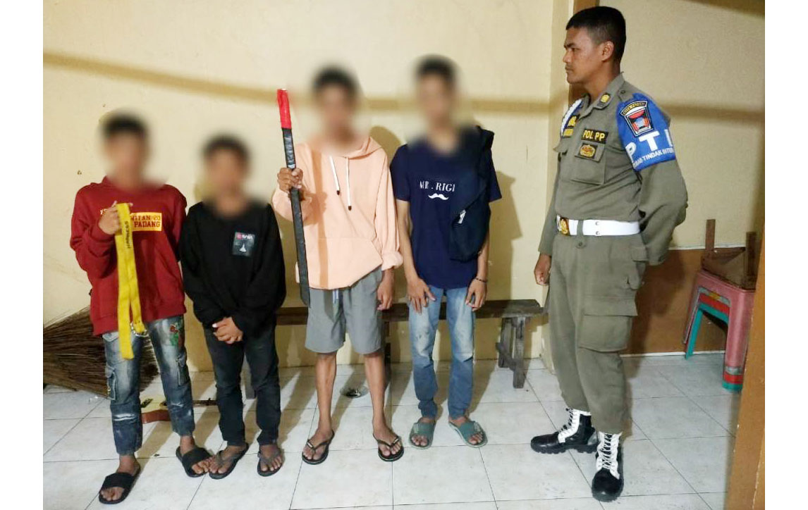 TAN MALAKA, METRO–Satpol PP Kota Padang bersama Polsek Kuranji, Camat Kuranji dan tokoh masyarakat Kuranji, melakukan patroli bersama dalam melakukan pencegahan terjadinya aksi tawuran di wilayah Kecamatan Kuranji. Dalam patroli gabungan Minggu (22/1) dini hari tersebut, petugas mengamankan empat orang remaja beserta satu unit senjata tajam berupa samurai dan satu unit motor sepeda motor.