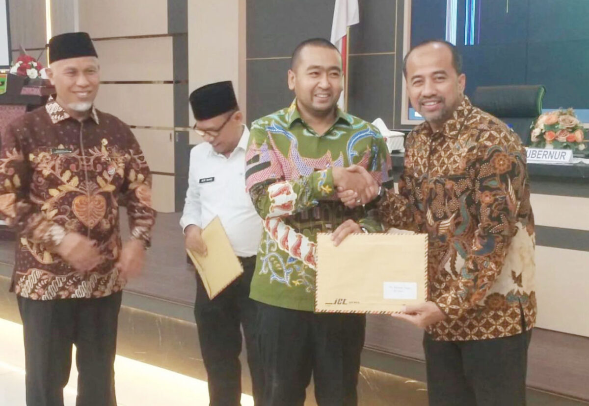 bersama— Plt Kepala Dispora Sumbar, Maifrizon bersama Gubernur Sumbar, Mahyeldi Ansharullah dan Wakil Gubernur, Audy Joinaldy.