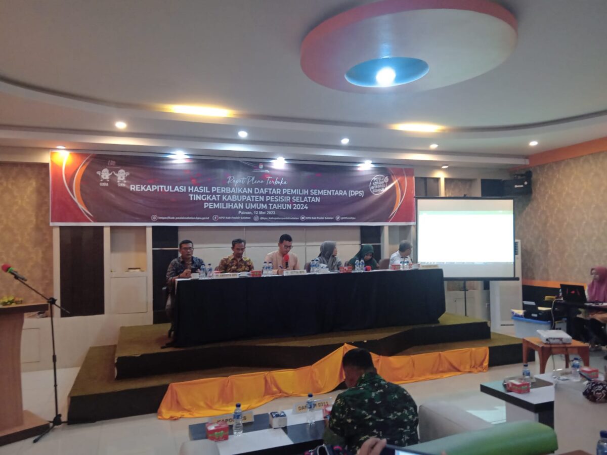 Hal itu diumumkan Ketua KPU Pesisir Selatan Epaldi Bahar, pada acara Rapat Pleno Terbuka Rekapitulasi Hasil Perbaikan Daftar Pemilih Sementara (DPS) tingkat Kabupaten Pesisir Selatan Pemilihan Umum Tahun 2024, di Painan, Jumat. (12/5/2023) di Hannah Hotel Syariah, Painan.
