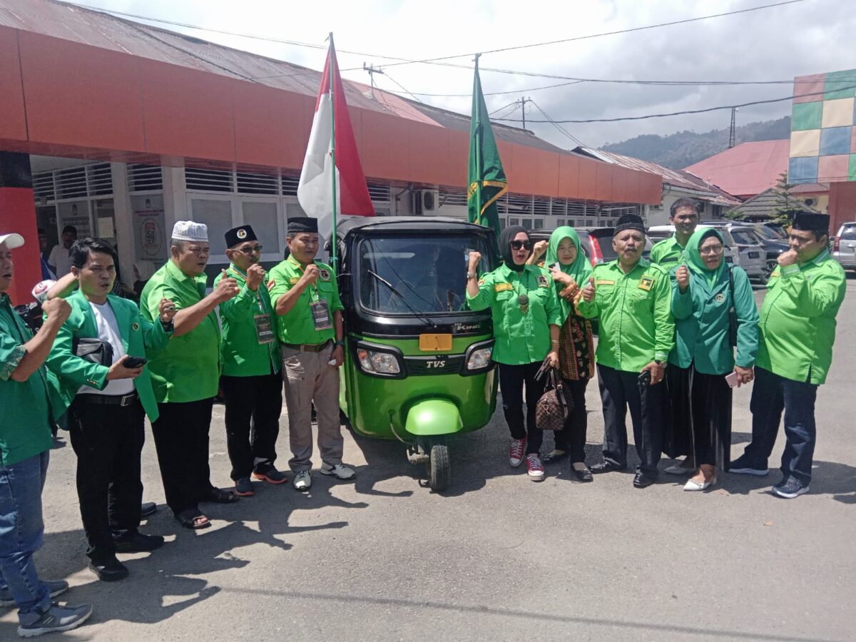 Dengan menggunakan kendaraan Bajai, Dewan Pimpinan Cabang ( DPC) Partai Persatuan Pembangunan (PPP) Kabupaten Pesisir Selatan, datang ke KPU Pessel.