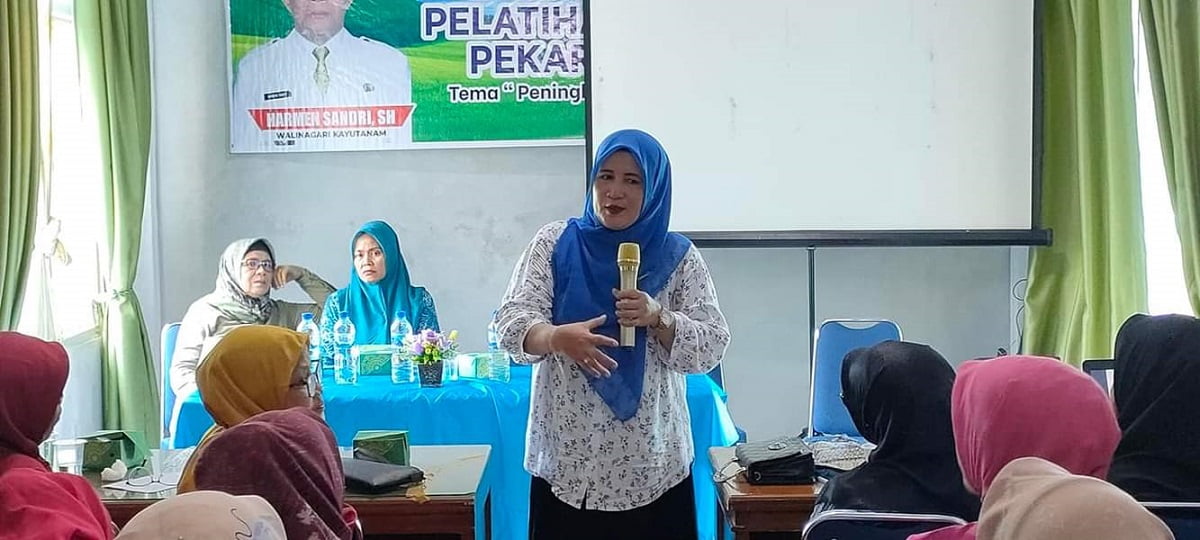 ARAHAN— Ketua TP PKK Ny Yusrita Suhatri Bur, memberikan arahan pada kader TP-PKK di Nagari Kayutanam, Kecamatan 2x11 Kayutanam.