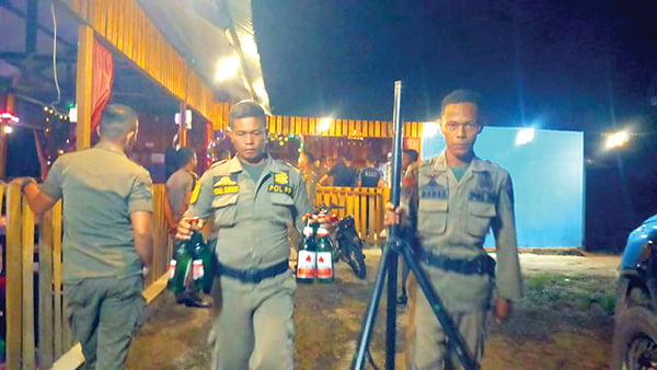 Rozaldi menuturkan, disaat petugas sedang melakukan penyitaan ditemukan juga adanya minuman beralkohol (minol) golongan A. Ketika ditanyai surat izin peredaran minuman beralkohol tersebut, pemilik juga tidak bisa memperlihatkannya kepada petugas.