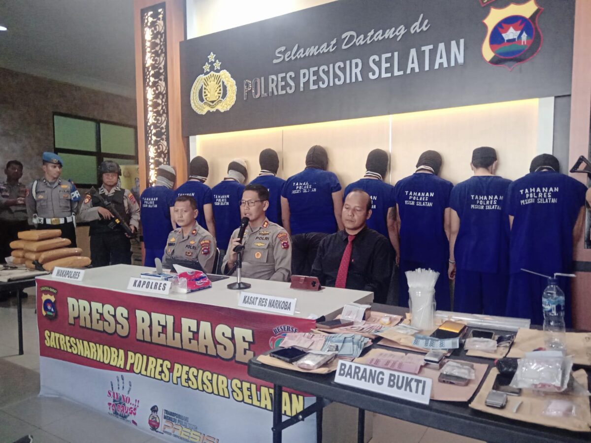PESSEL METRO–Press release digelar Satuan Reserse Narkoba Polres Pesisir Selatan, Selasa (16/5/2023) semester I dari bulan Januari – Mei tahun 2023, ada dua kecamatan di wilayah hukum Polres Pesisir Selatan masuk dalam kategori rawan narkoba. Yaitu Kecamatan Sutera dan Kecamatan Pancung Soal.
