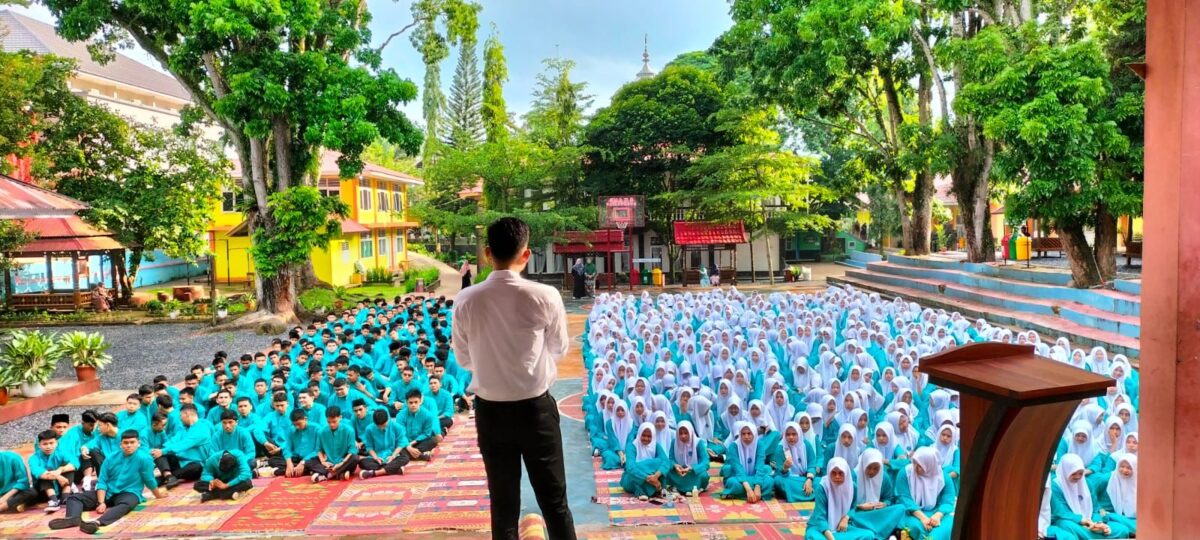 SOSIALISASIKAN— Public Relation PT Menara Agung Nando Putra Kamiko saat menyosialisasikan AHM Best Student 2023 di sekolah-sekolah.