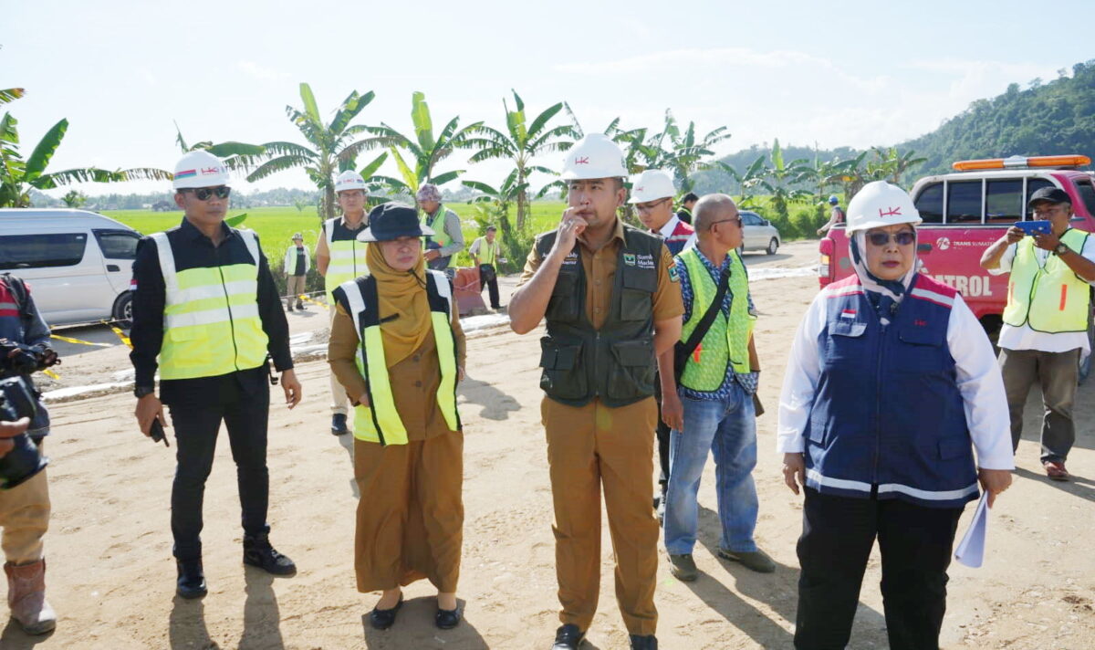 PADANG, METRO–Wakil Gubernur Sumatra Barat (Wagub Sumbar), Audy Joinaldy, bersama Tim PT Hutama Karya Infrastruktur (HKI) melihat secara langsung progres pengerjaan konstruksi pembangunan jalan tol Padang-Pekanbaru seksi Padang-Sicincin, Senin, (22/5).
