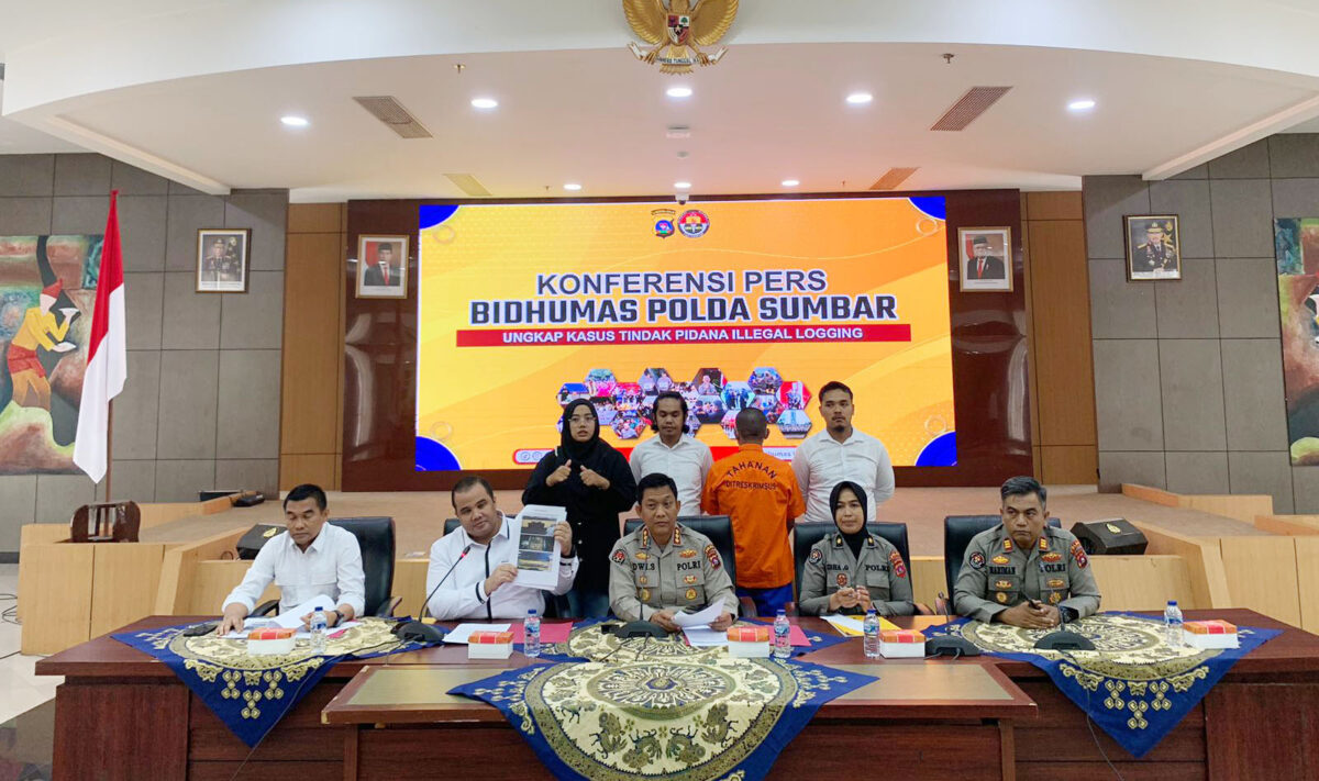 ILLEGAL LOGGING— Polda Sumbar menggelar konferensi pers terkait pengungkapan kasus illegal logging.