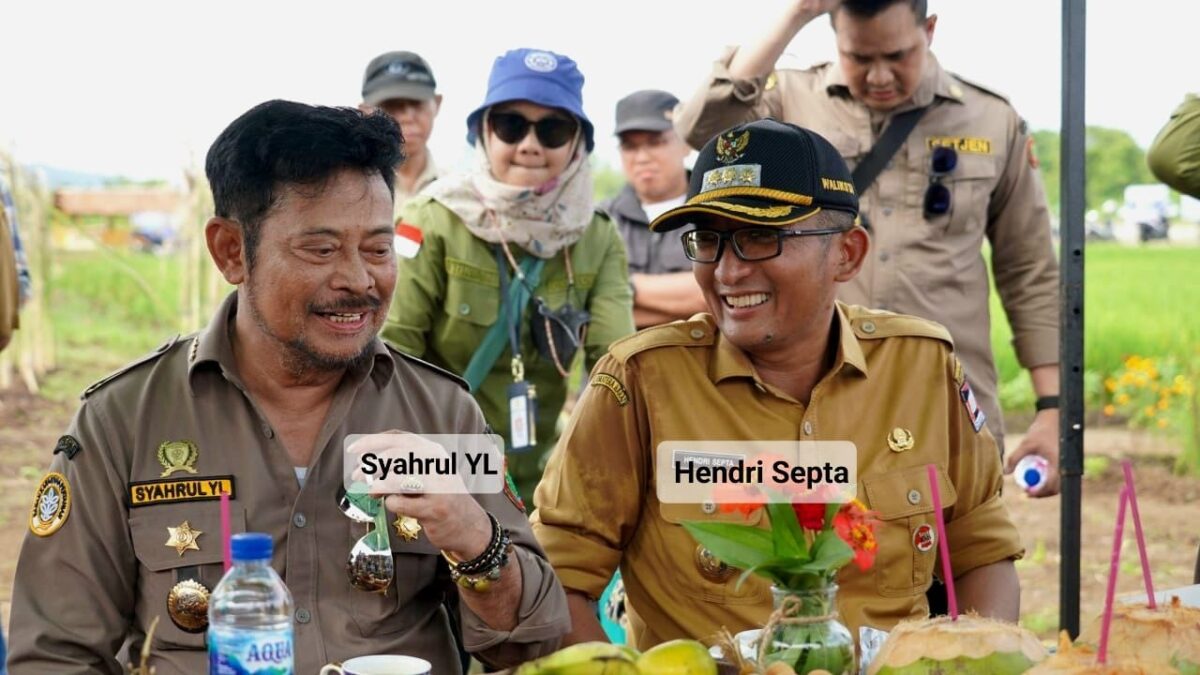 PADANG, METRO–Wali Kota Padang Hendri Septa mendampingi Menteri Pertanian (Mentan) Republik Indonesia (RI) Syahrul Yasin Limpo meninjau lokasi Pekan Nasional (Penas) Kontak Tani Nelayan Andalan (KTNA) ke-16 tahun 2023 di Lanud Sutan Syahrir, Selasa (30/5).