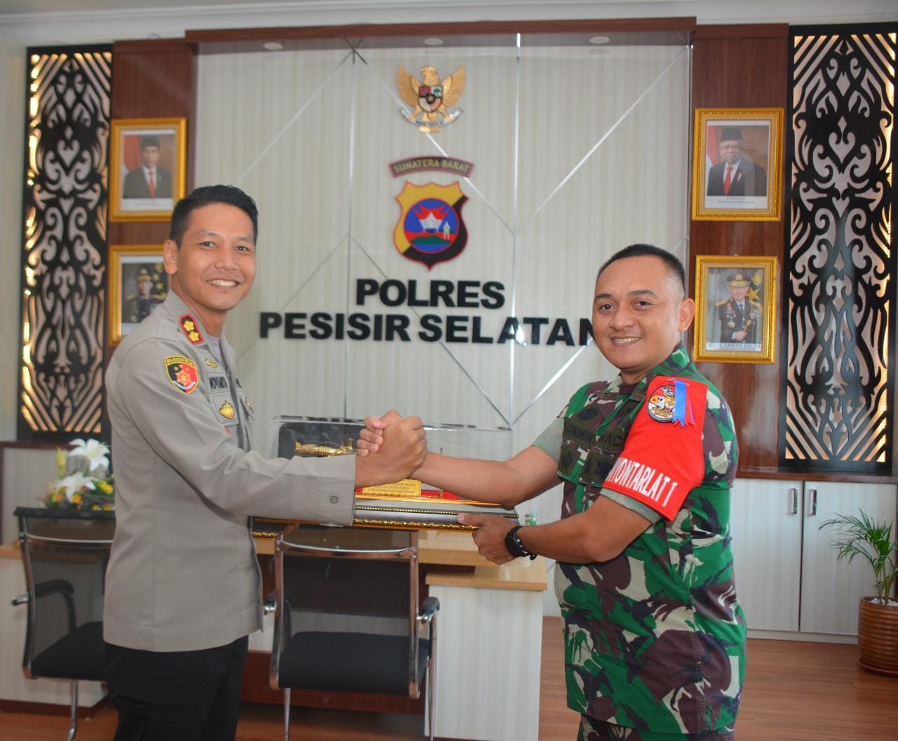 Sebagai bentuk kedekatan kerjasama, serta dukungan selama pelaksanaan Integrasi Taruna Wreda Nusantara ( Latsitardanus) ke XLIII tahun 2023. Danyontarlat 1/ Macan Letkol.Arm.Aris Gunawan,M.Han, menyerahkan cendramata ke Kapolres Pesisir Selatan AKBP. Novianto Taryono.SH, SIK, MH Rabu 7 Juni 2023 diruang kerja nya.
