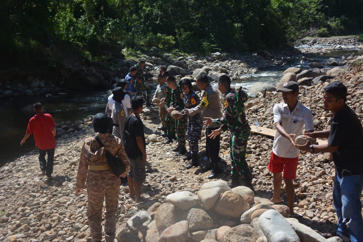BEBAUR—Taruna Latsitardanus XLIII di Kabupaten Pessel bersama masyarakat berbaur guna membangun program fisik.