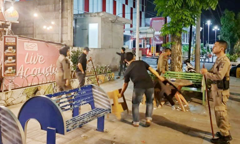 Selain itu, Satpol PP ju­ga melakukan peneguran ke­pada Pedagang Kaki Li­ma (PKL) yang berjualan disana. “Kita lakukan peneguran secara humanis dan persuasif kepada para pe­dagang tersebut, bahwa dilokasi tersebut tidak dibenarkan berjualan siang maupun malam,” ungkap Mursalim.