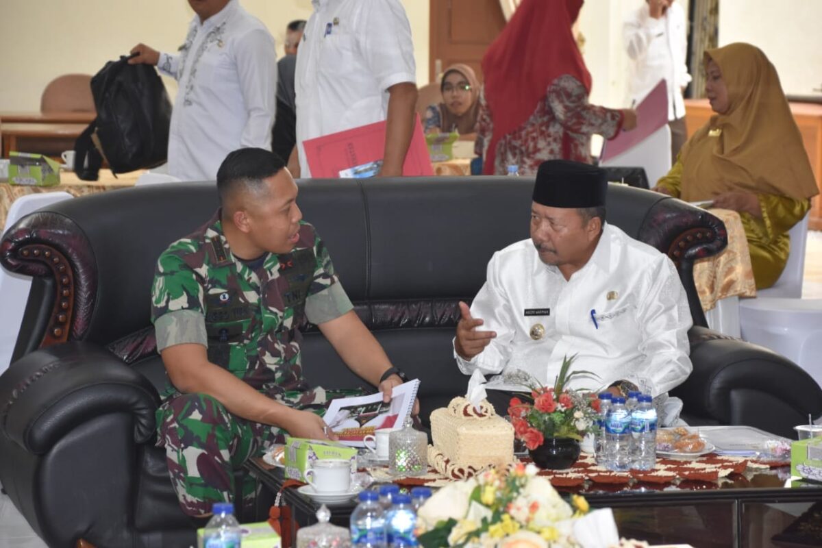AGAM, METRO–Bupati Agam, Dr H Andri Warman MM dengarkan pemaparan Dandim 0304/Agam, Letkol Czi Renggo Yudi Ariesko SE MM terkait rencana TMMD ke 117 Kodim 03/04 Agam tahun 2023, di Mess Pemkab Agam, Belakang Balok, Bukittinggi, Jumat (9/6).