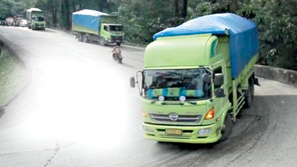 Senin (12/6) di kawasan Panorama 1, Sitinjau Lauik, Kecamatan Lubuk Kilangan, terlihat truk-truk odol yang bermuatan batu bara tersebut lalu lalang masuk ke Kota Padang dengan beriringan.