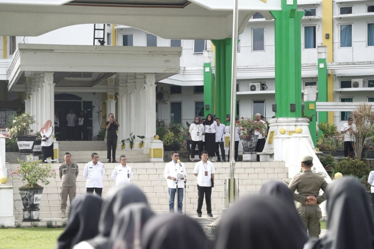 PIMPIN—Wakil Bupati Rizki Kurniawan N pimpin apel pagi bagi tenaga Non ASN di Lingkungan Pemkab Lima Puluh Kota.