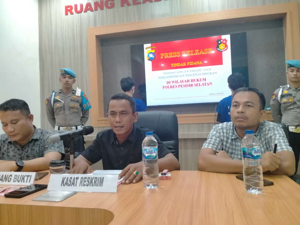 ” kita kenakan pasal 2 ayat (1) dan (2) Undang – Undang Republik Indonesia nomor 21 Tahun 2007 tentang pemberantasan tindak Pidana Perdagangan Orang dengan ancaman hukuman penjara paling singkat 3 tahun dan paling lama 15 tahun. Dan Pidana denda paling sedikit Rp.120.000.000 dan paling banyak Rp.600.000.000. Jo pasal 76 I dan pasal 88 Undang – Undang RI Nomor 35 Tahun 2014 tentang Perubahan atas Undang – Undang RI Nomor 32 Tahun 2022 tentang Perlindungan Anak dengan sangksi berupa pidana dengan pidana penjara paling lama 10 tahun dan atau denda paling banyak Rp.200.000.000,” tegas AKP. Andra Nova.S.H,M.H.