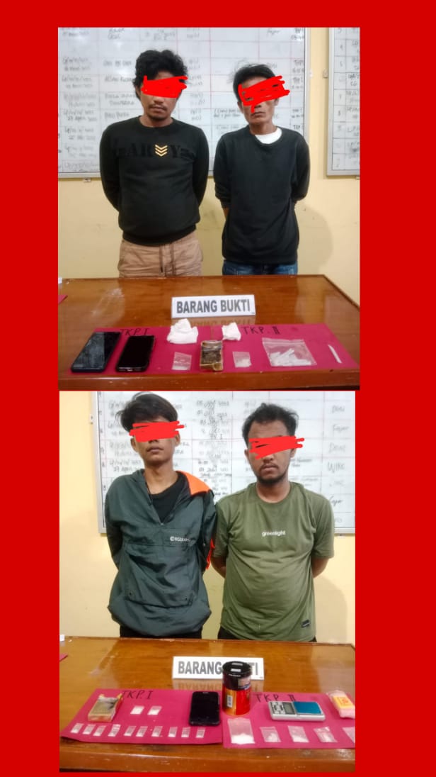 PESSEL METRO–Tim Opsnal Sapu Jagat Satresnarkoba Polres Pesisir Selatan kembali mengamankan empat orang tersangka penyalagunaan Narkoba di wikayah hukum Polres Pesisir Selatan. Beserta barang bukti narkotika golongan 1 shabu sebanyak 19 paket sedang dan kecil.