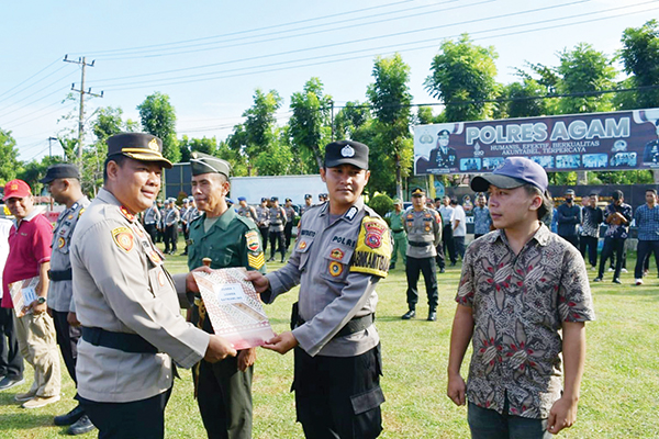 Pada apel tersebut, Kapolres Agam memberikan piagam penghargaan kepada tiga Satkamling terbaik yang dinilai aktif dalam menjalankan fungsi kamtibmas.